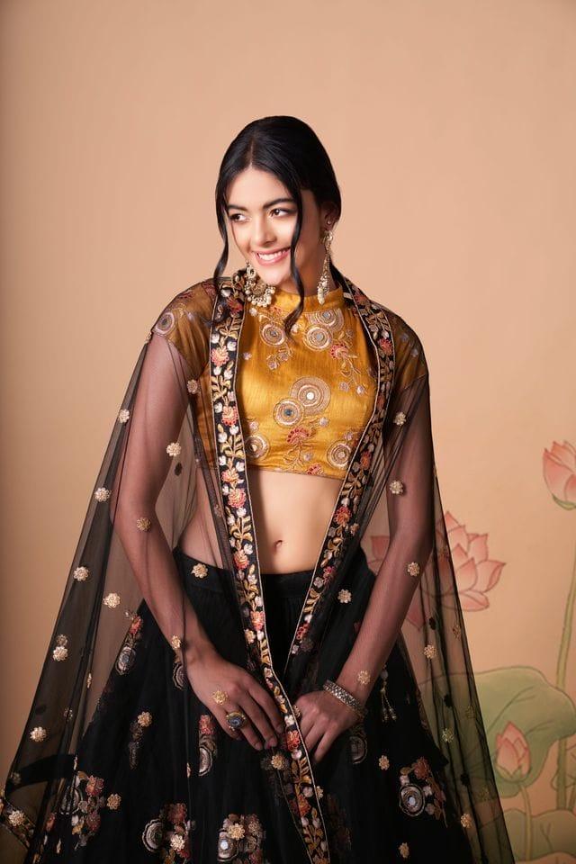 Fabric: Premium Black Soft Net for a lightweight, airy, and graceful silhouette.