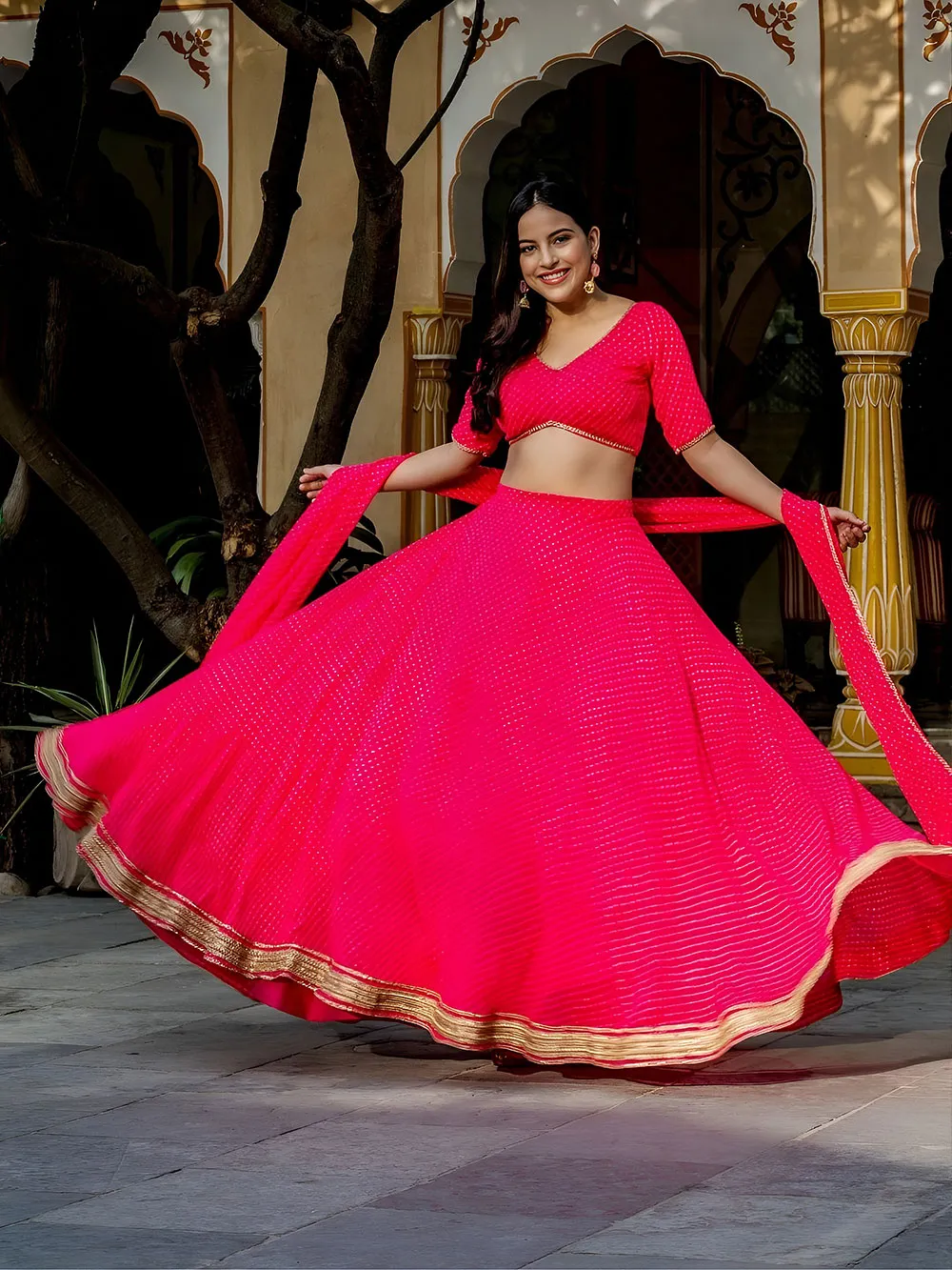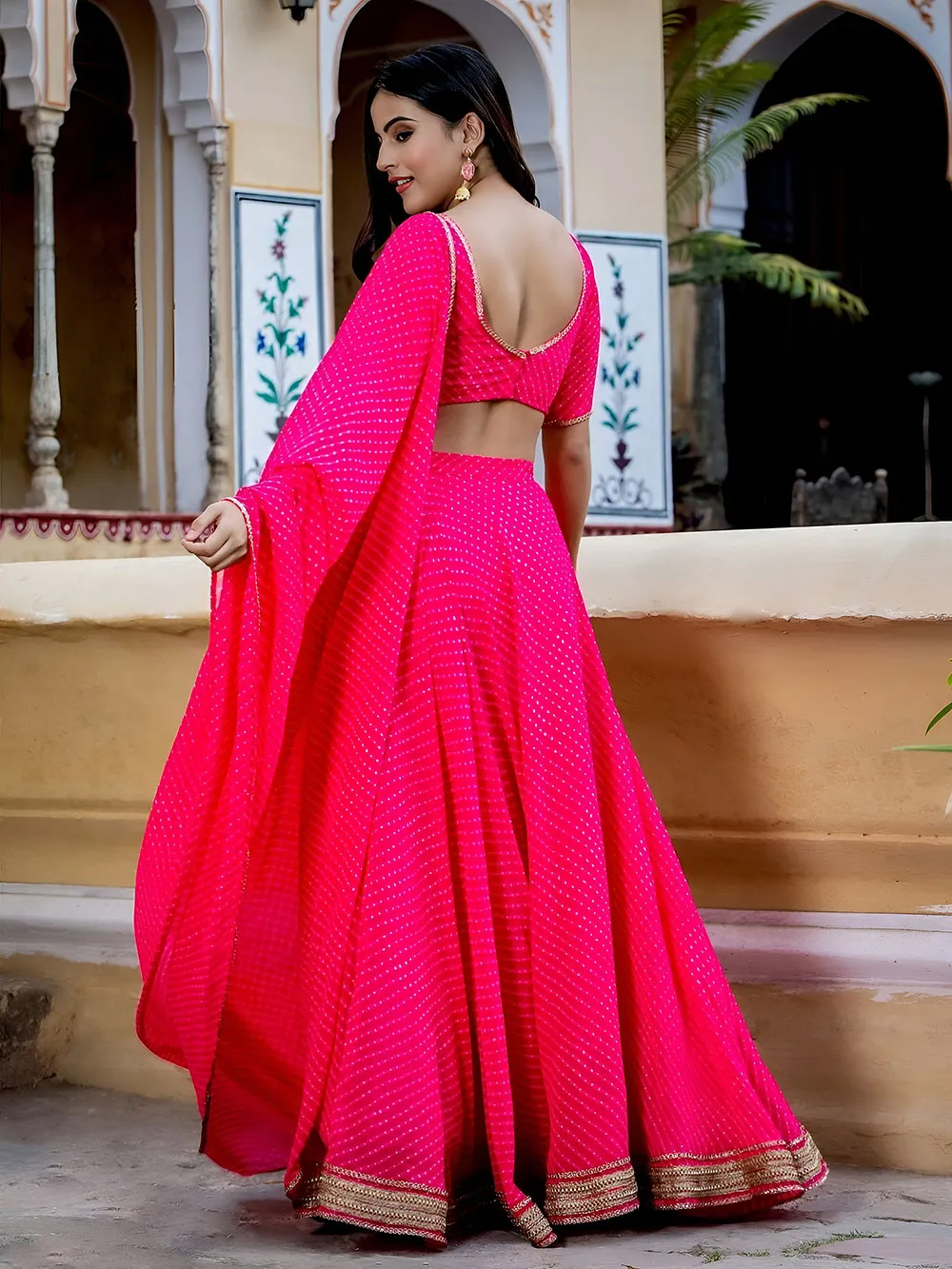 - Dupatta Fabric: Georgette with leheriya print and lace detailing