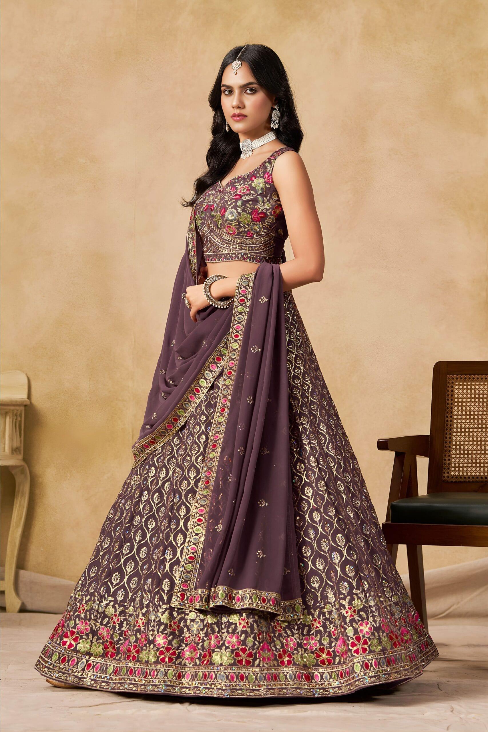 Purple Georgette Lehenga with Sequins & Thread Embroidery