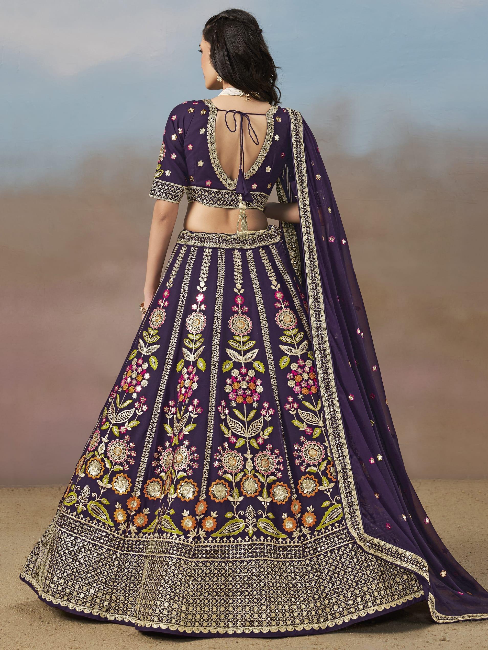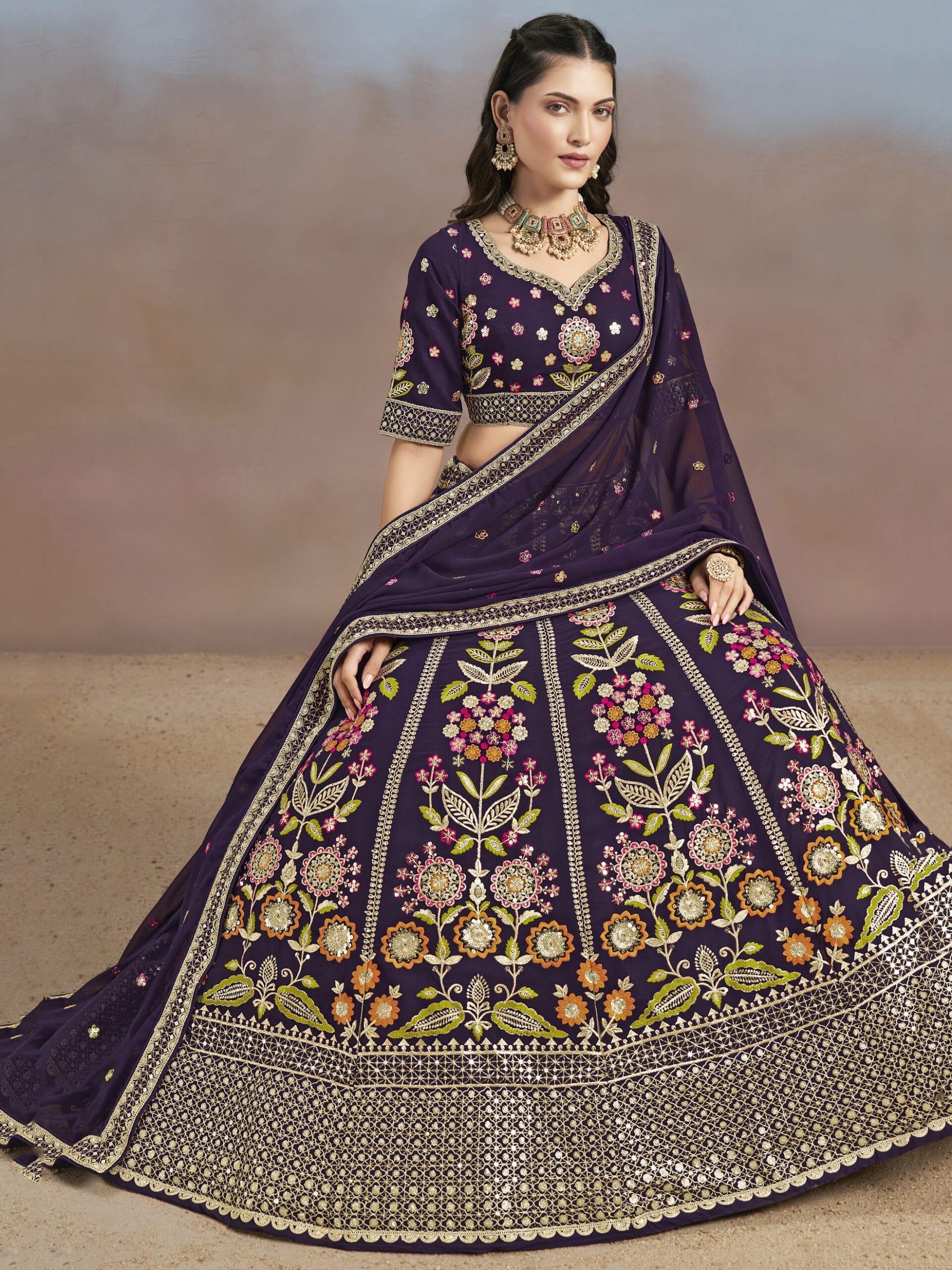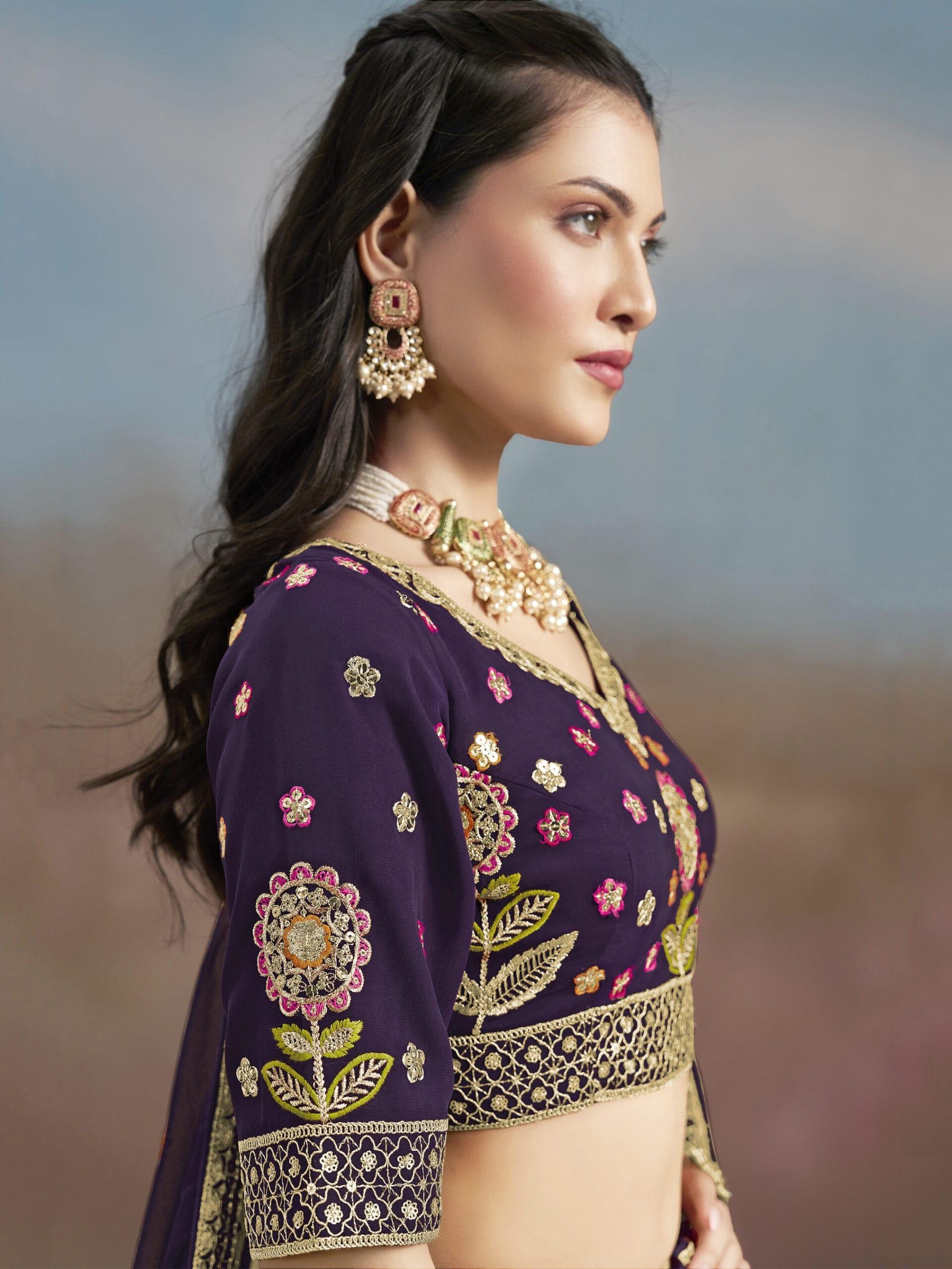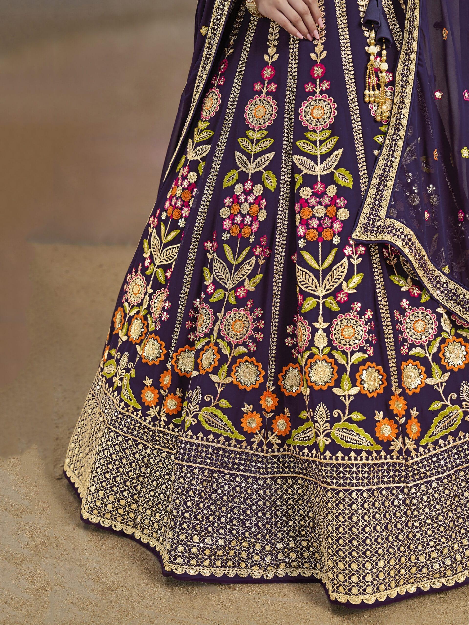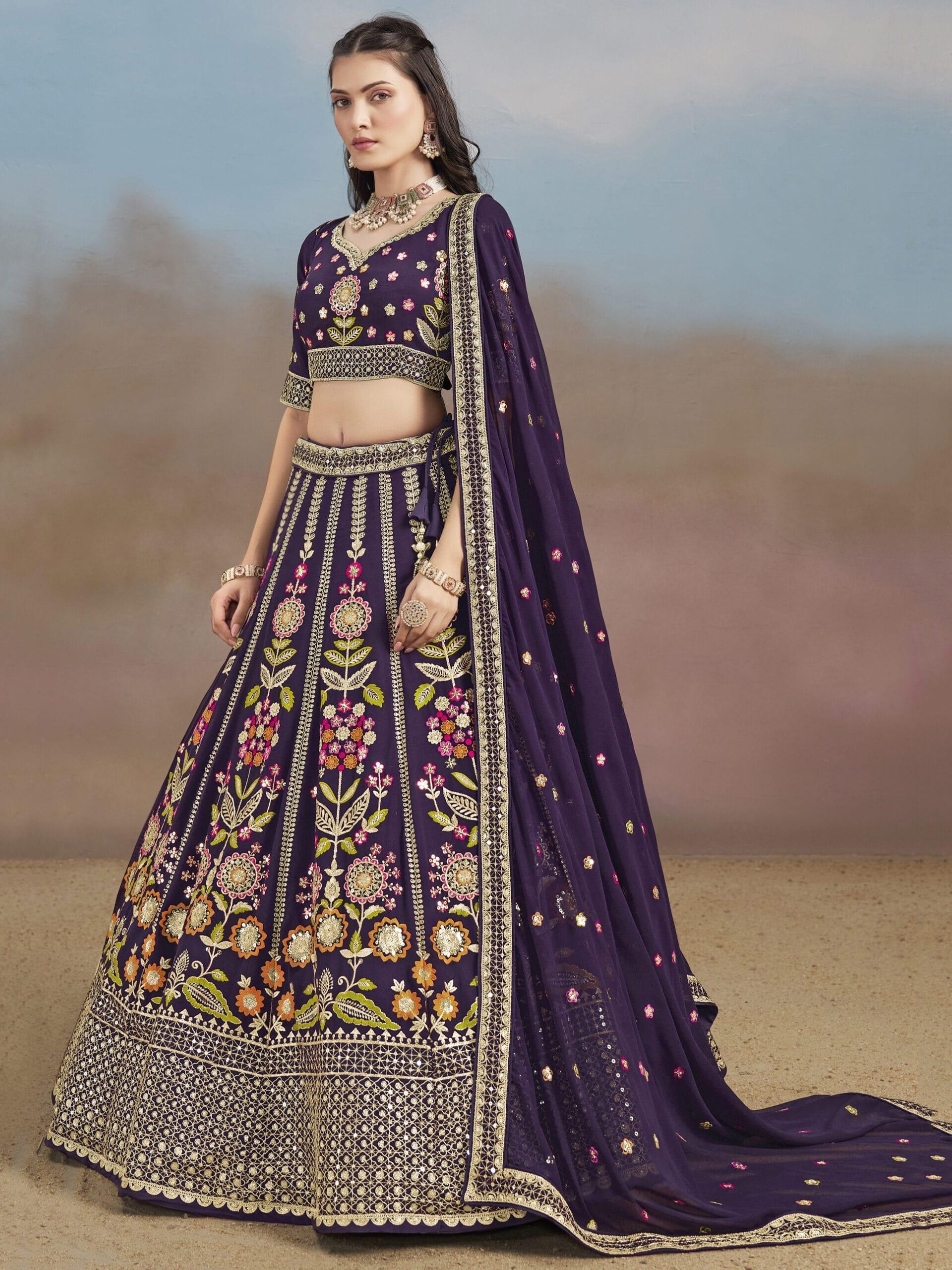 Purple Georgette Lehenga with Sequins, Zari, Dori & Multicolor Thread Embroidery